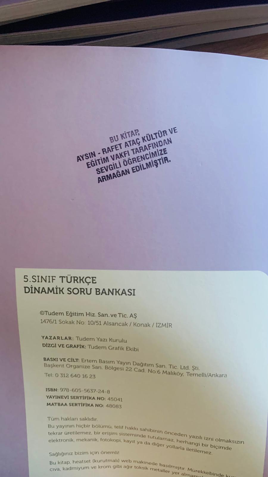 2025 Yılı Hatay Defne Koçören Cemalettin Tınaztepe Ortaokulu Öğrencilerine Yardımcı Kaynak Kitap Desteği